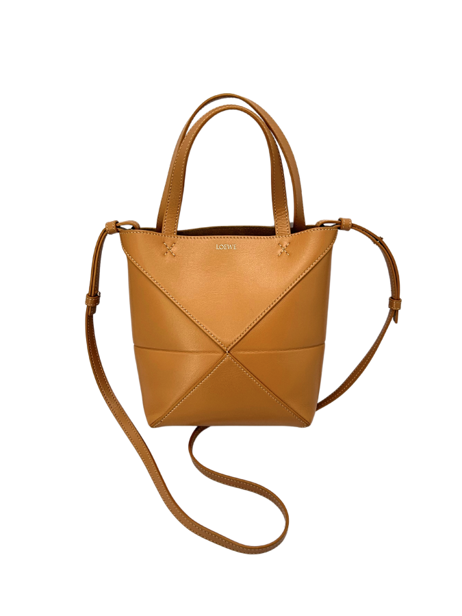 Mini Puzzle Fold Tote Shiny Calfskin In Warm Desert Ghw